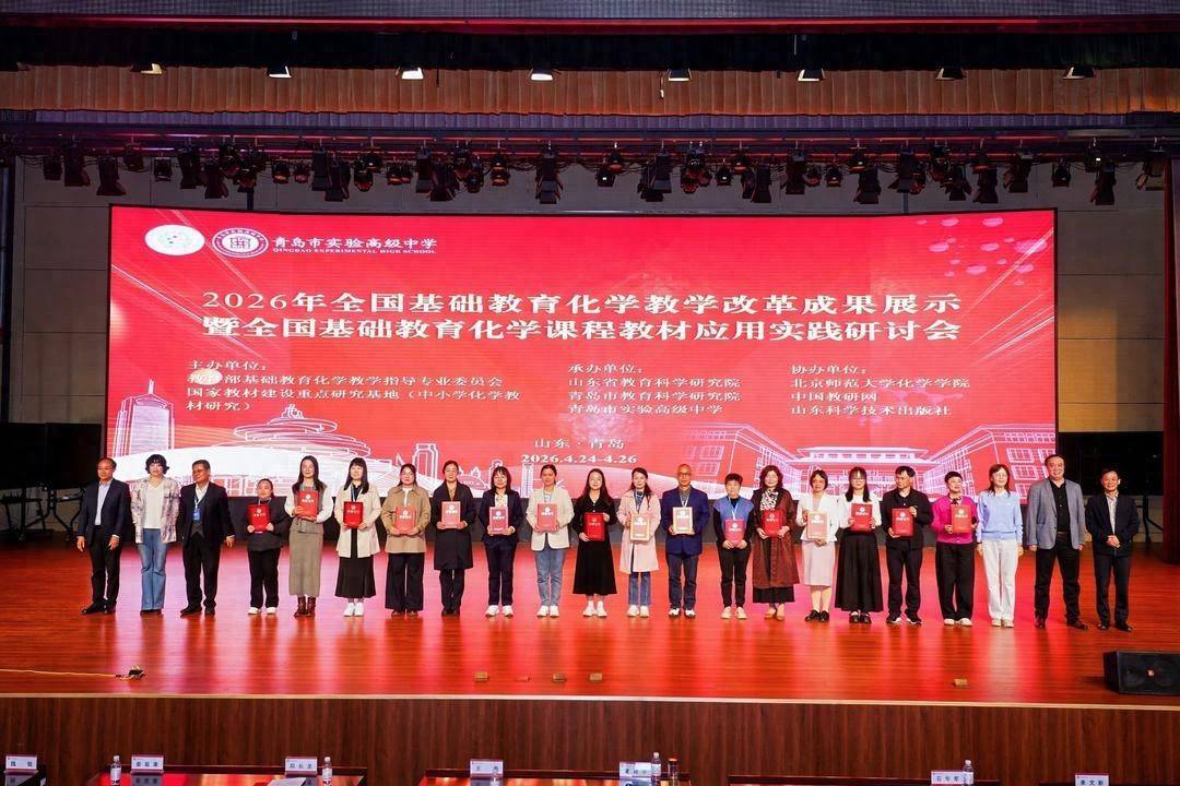 4月25日至26日,2026年全国基础教育化学教学改革成果展示暨全国基础教育化学课程教材应用实践研讨会在青岛市实验高级中学举行。本次研讨会汇聚全国教研力量,共探基础教育化学教育高质量发展之路,全面展示新时代化学教学改革的丰硕成果。